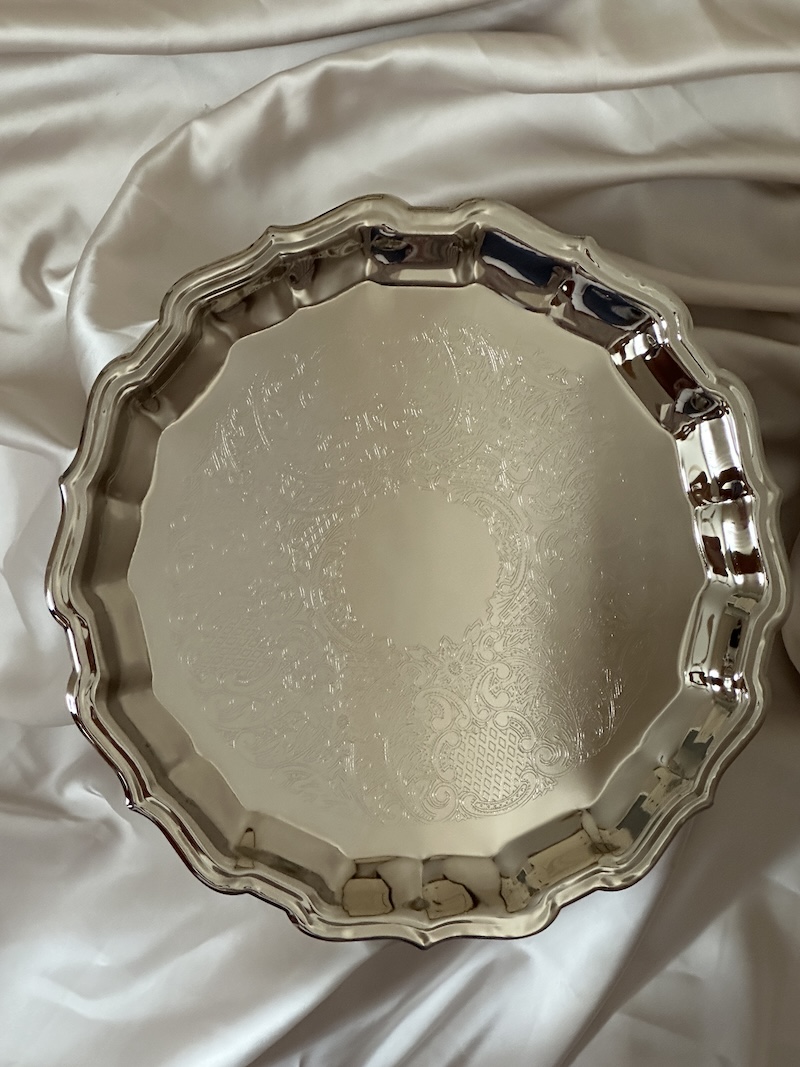 לפרטים על המוצר>>מגש על רגל Château עגול בציפוי כסף
