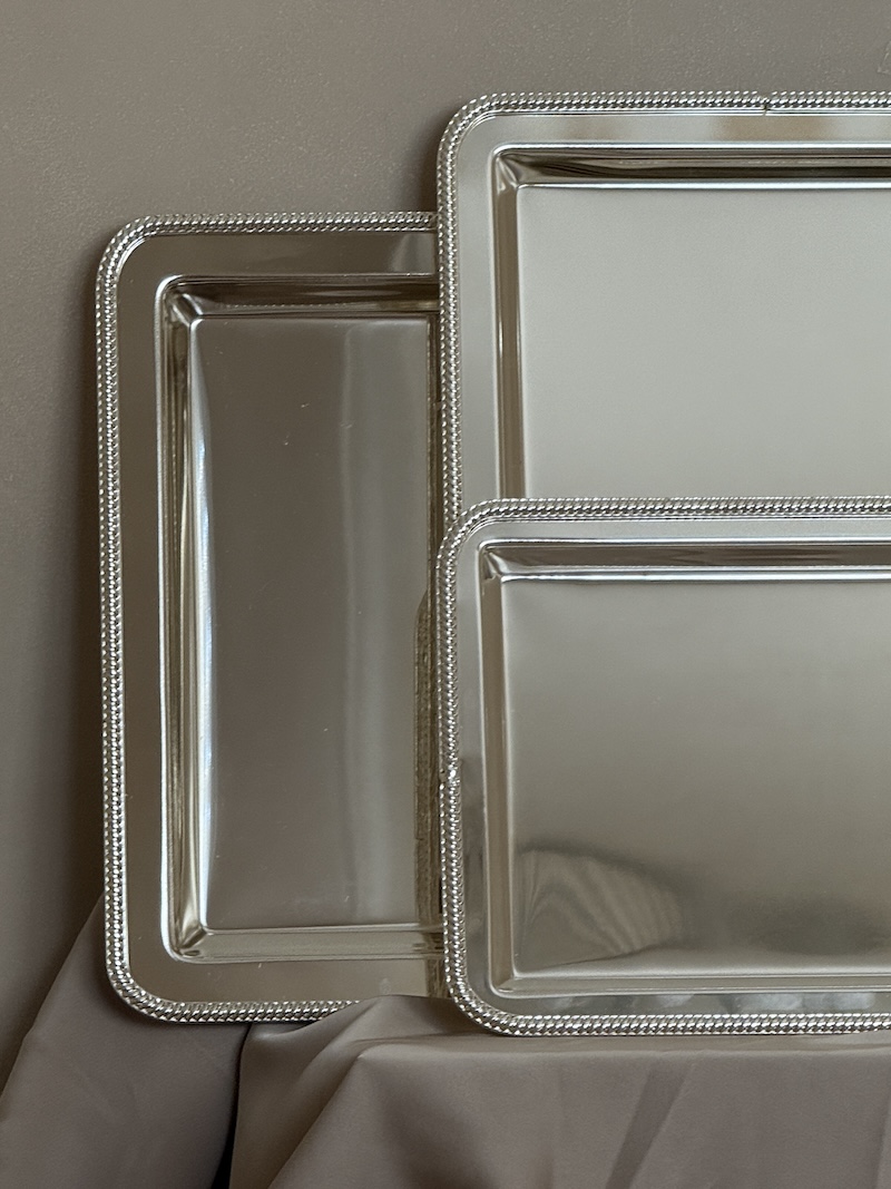 מגש מלבני Umbria בינוני בציפוי כסף ועיטורים עדינים
