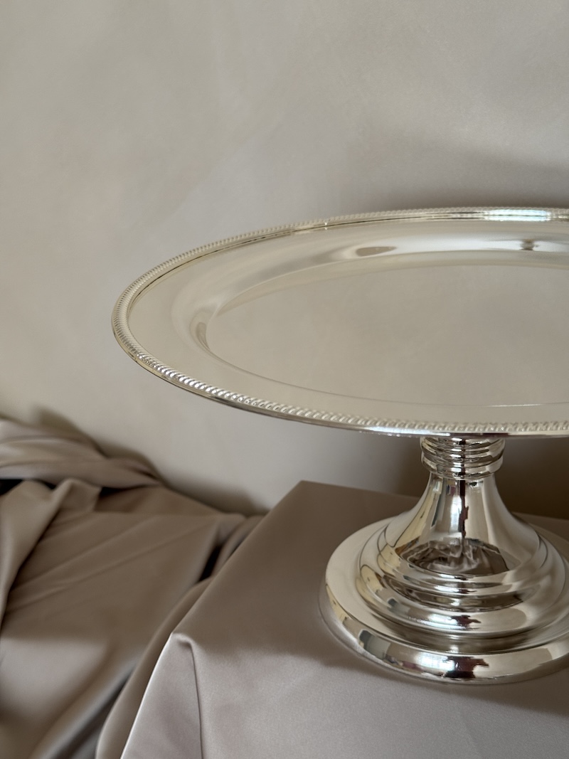 מגש על רגל Umbria עגול בציפוי כסף ועיטורים עדינים